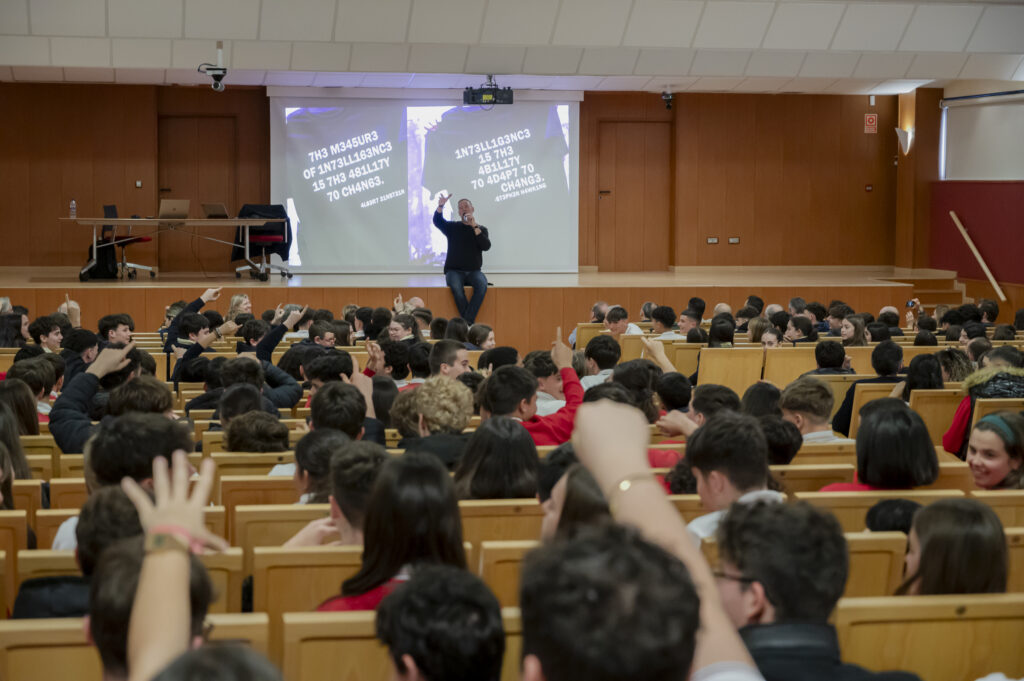 Godella, 18 de febrero de 2025. Godella ha sido escenario de una nueva presentación del Proyecto FES, la iniciativa de prevención de adicciones comportamentales en adolescentes impulsada por la Plataforma para el Juego Sostenible, de la mano de la Federación de Centros de Enseñanza de Valencia (FECEVAL). El acto ha tenido lugar en las Escuelas Profesionales Luis Amigó, donde más de 300 alumnos del centro han participado activamente en esta jornada educativa y de sensibilización.
